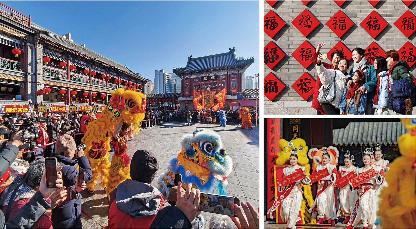 新时代以来,在以习近平同志为核心的党中央坚强领导下,党和国家事业取得历史性成就、发生历史性变革,群众过上了越来越红火的好日子。图为各地群众载歌载舞、欢度快乐祥和的马年新春。
